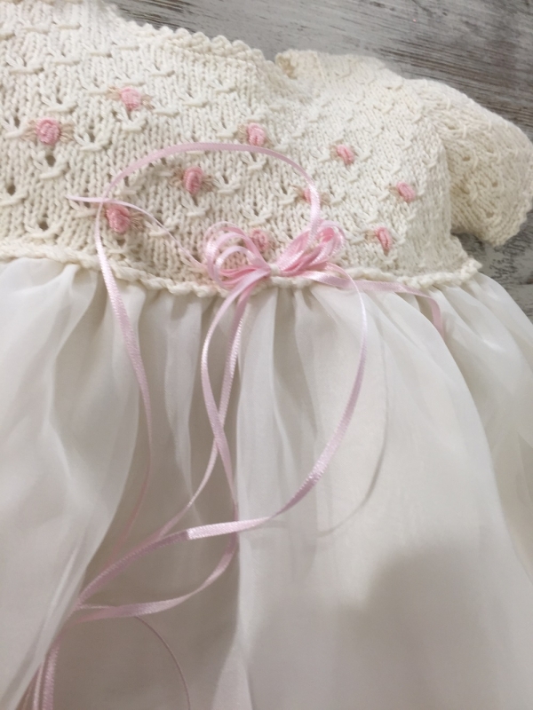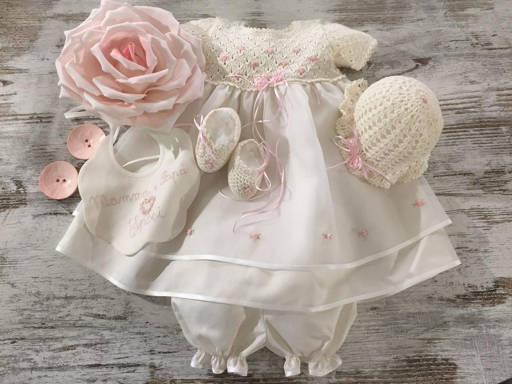 Abitino da cerimonia con corpetto in filo fatto a mano con punto traforato.