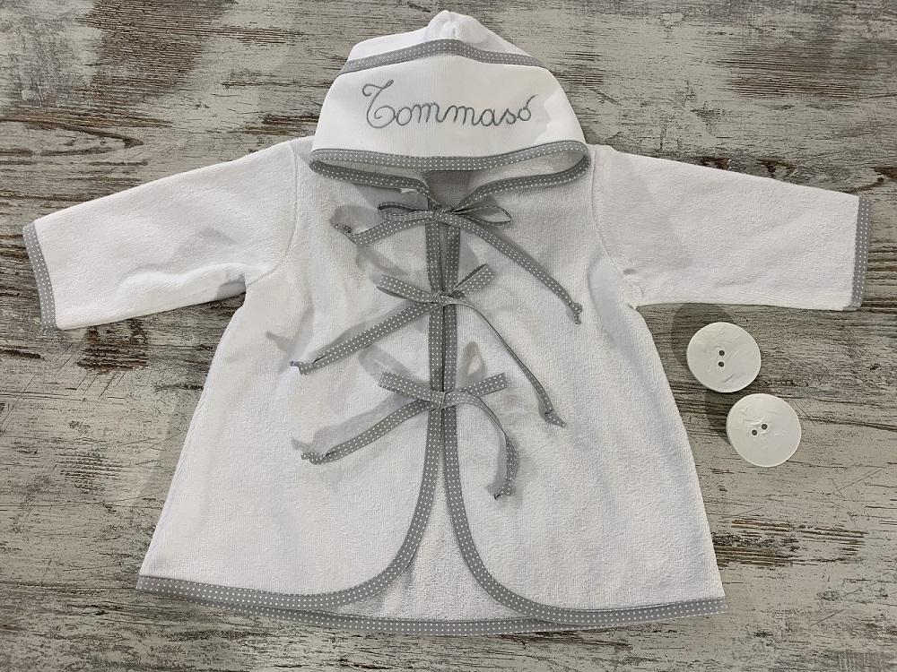 Costo dell'accappatoio 60 euro , bavaglino 20 euro.