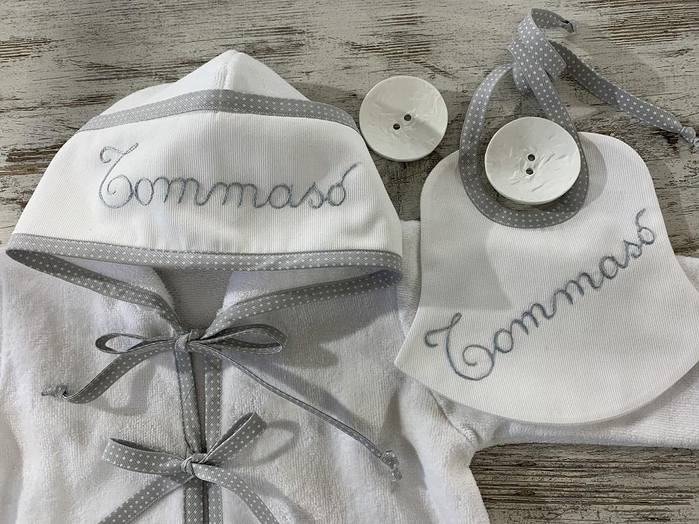 SET formato da un accappatoio+ un bavaglino personalizzati.