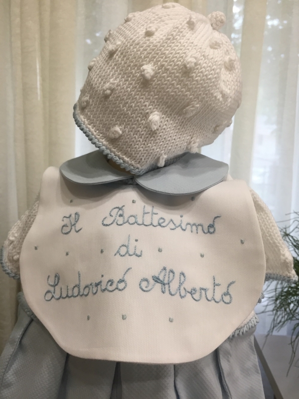 Bordato a punto gambero in azzurro