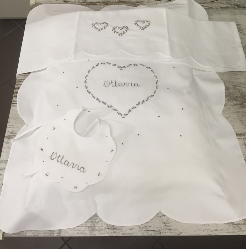 Copertina smeralta sui 4 lati ricamata fiori punto vapore e personalizzata.