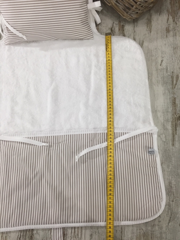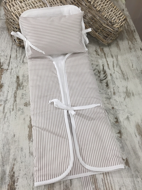 Composto da un piano imbottito : la parte esterna in tessuto piquet millerighe , la parte interna in spugna 100% puro cotone.