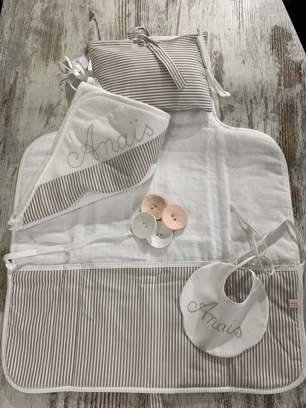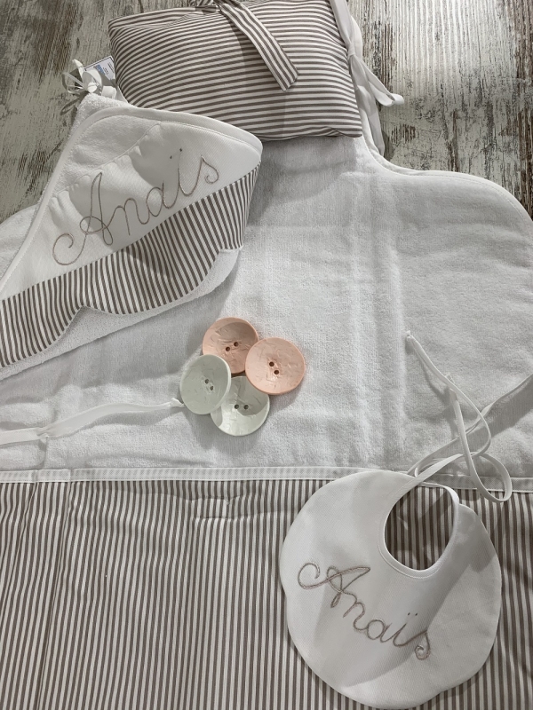 Possibilità di poter abbinare un accappatoio a telo ( 50 euro ) e il bavaglino ( 20 euro ) come nella foto.