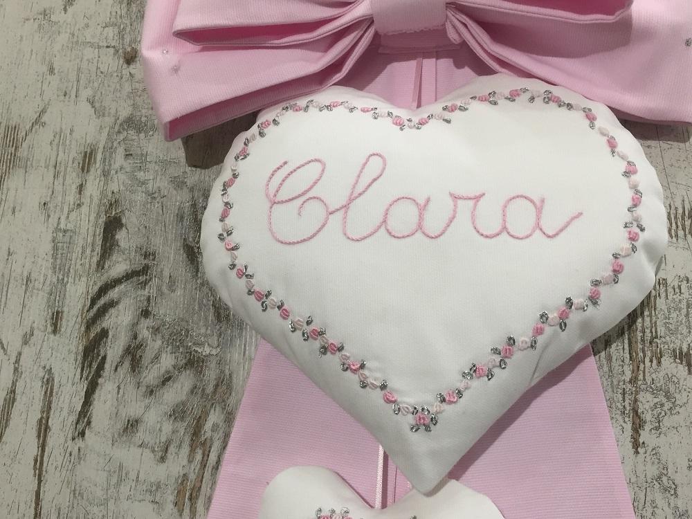 Fiocco molto elaborato con 7 cuori imbottiti di varie misure.