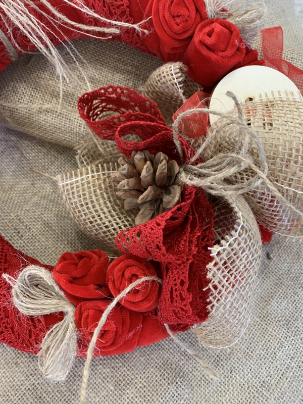 RIFINITA CON VELLUTO PIZZO E ROSELLINE FATTE A MANO.