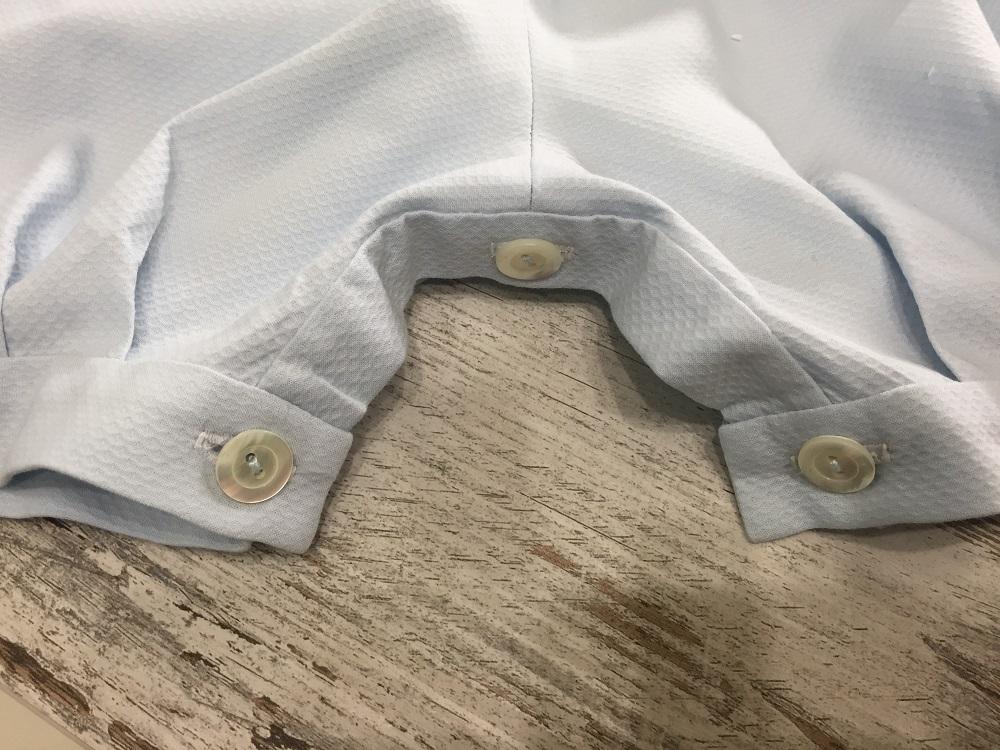 Parte inferiore in piquet nido d'ape azzurro aperto nel cavallo per il cambio del pannolino.