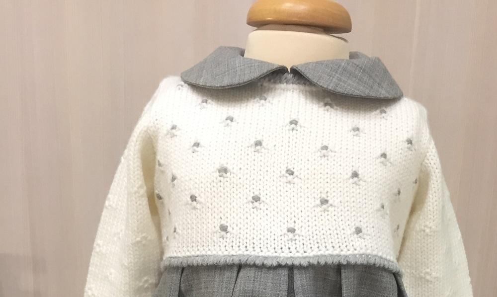 Pagliaccetto composto dal corpetto in filato 100 % lana merinos fatto a MANO bordato all'uncinetto e pois ricamati a mano.